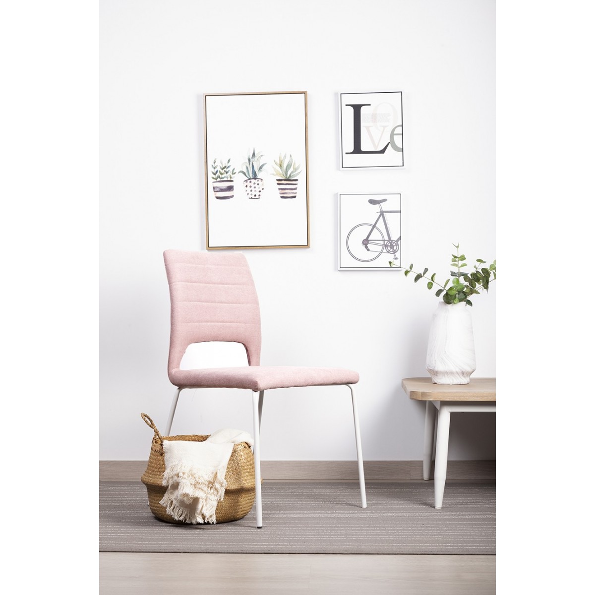 Les chaises ANAELLE ont un design original. Assise en toile matelassée, dossier ergonomique pour un bon maintient, et des pieds fins en acier blanc perlé apportant une légèreté et une modernité à leurs courbes. L'ergonomie des chaises et la qualité des rembourrages et du tissu les rendent extrêmement confortables. Elles se marient à merveille avec tous styles d'intérieurs et prendront tous leurs sens une fois en place !