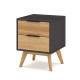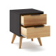 Pratique par sa taille mais chic par son style, la table de chevet JUNA complète avec caractère la collection éponyme. Son design soigné mêle un caisson en bois noir profond à deux tiroirs en bois verni miel, créant un contraste moderne et chaleureux. Grâce à ses lignes épurées, ses poignées noires discrètes et ses pieds obliques en bois massif, cette table de nuit s’intègre facilement dans une chambre contemporaine ou inspirée du style nordique.