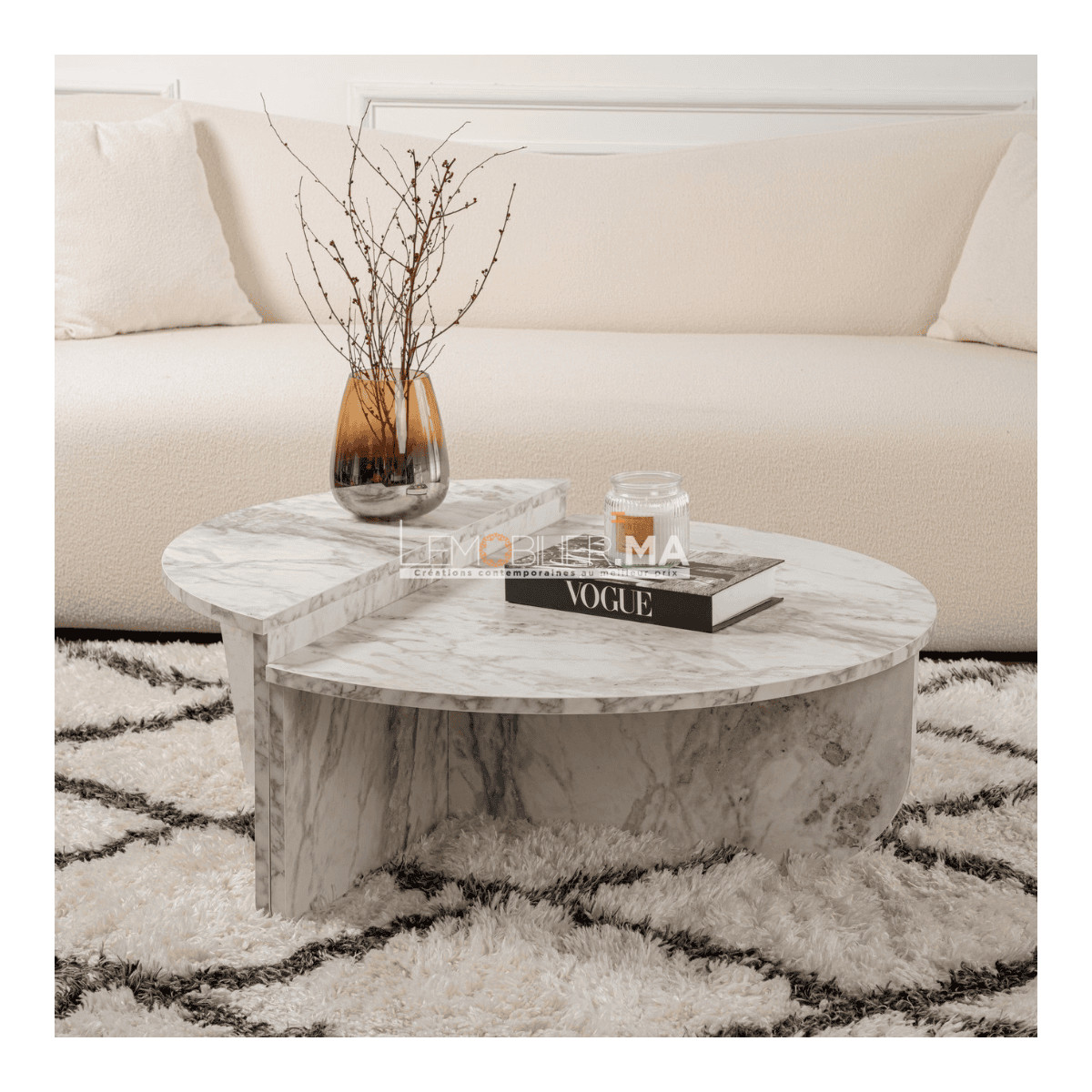 Un duo sculptural pour des instants conviviaux. Avec ses deux plateaux demi-lune qui se croisent pour former une silhouette ronde pleine d'élégance, la table basse MELY apporte une touche de design graphique à votre salon. Elle combine deux niveaux subtilement décalés, créant un jeu de volumes aussi esthétique que pratique.