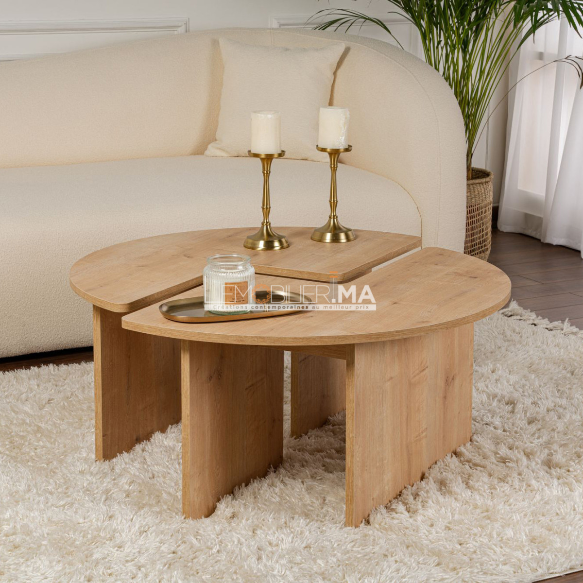 Déclinées en plusieurs finitions – effet béton, travertin, chêne clair, noyer ou chêne noir cérusé – les tables NILO s’adaptent à tous les styles d’intérieur. Leur gabarit généreux (Ø 90 cm x H 41 cm) repose sur un piétement plein et stable en panneaux MDF robustes. Pensées pour le quotidien, elles offrent une belle surface d’usage tout en apportant un caractère affirmé au salon.