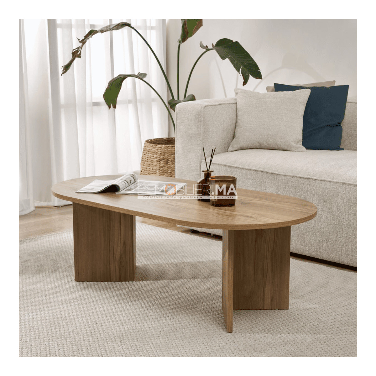 Avec sa silhouette ovale adoucie et son piètement croisé, la table basse NYRO incarne l’équilibre parfait entre sobriété et présence. Proposée en deux finitions — effet noyer et effet chêne miel chaleureux ou rendu travertin minéral — elle s’invite avec naturel dans tous les salons contemporains. Son plateau de 119 cm de long repose sur deux panneaux croisés qui lui apportent une assise stable, sans surcharge visuelle.