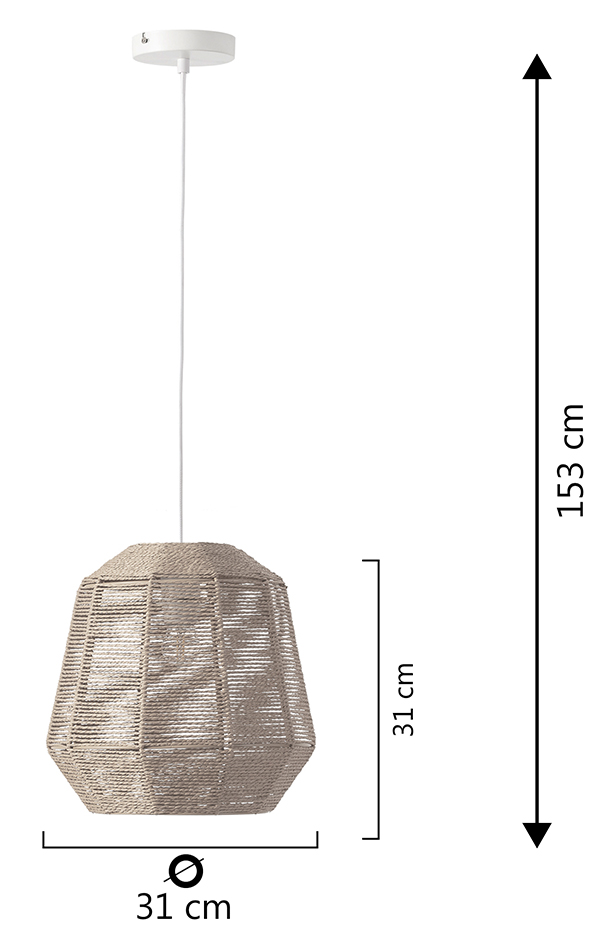 Ajoutez une touche d’authenticité et de chaleur à vos espaces avec la suspension NAKY. Entièrement habillée de corde de chanvre tissée à la main, cette suspension séduit par son esthétique artisanale et son design géométrique original. Sa structure en acier assure une excellente stabilité, tandis que son tressage laisse subtilement passer la lumière pour projeter de délicats jeux d’ombres sur les murs.