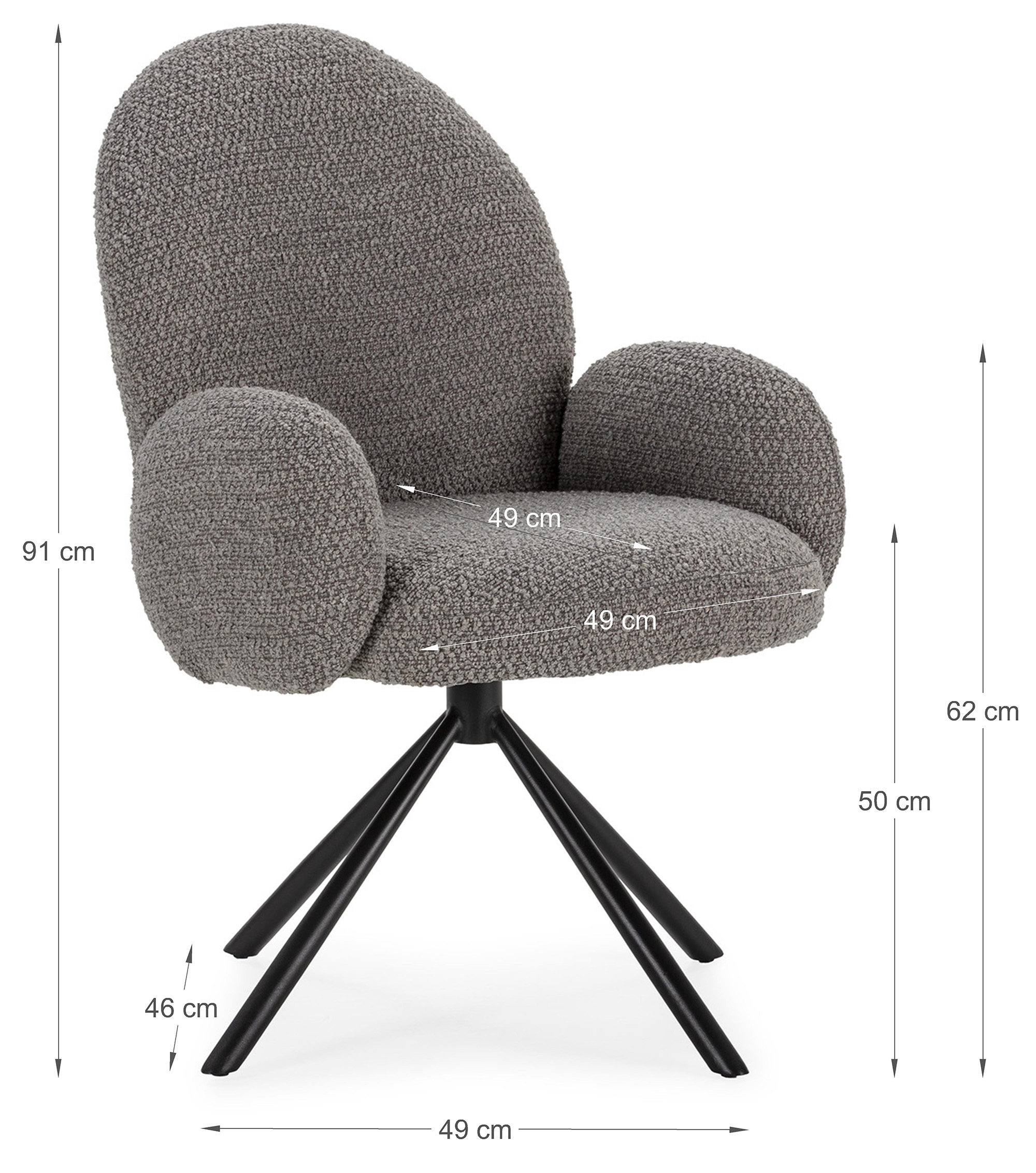 Le fauteuil CLEO conjuque style, confort et polyvalence ! Il séduit par ses formes arrondies et son design contemporain. Son revêtement en toile bouclée apporte une touche chaleureuse et texturée, tandis que sa structure en acier laqué epoxy noir mat lui confère une allure graphique et une grande stabilité.