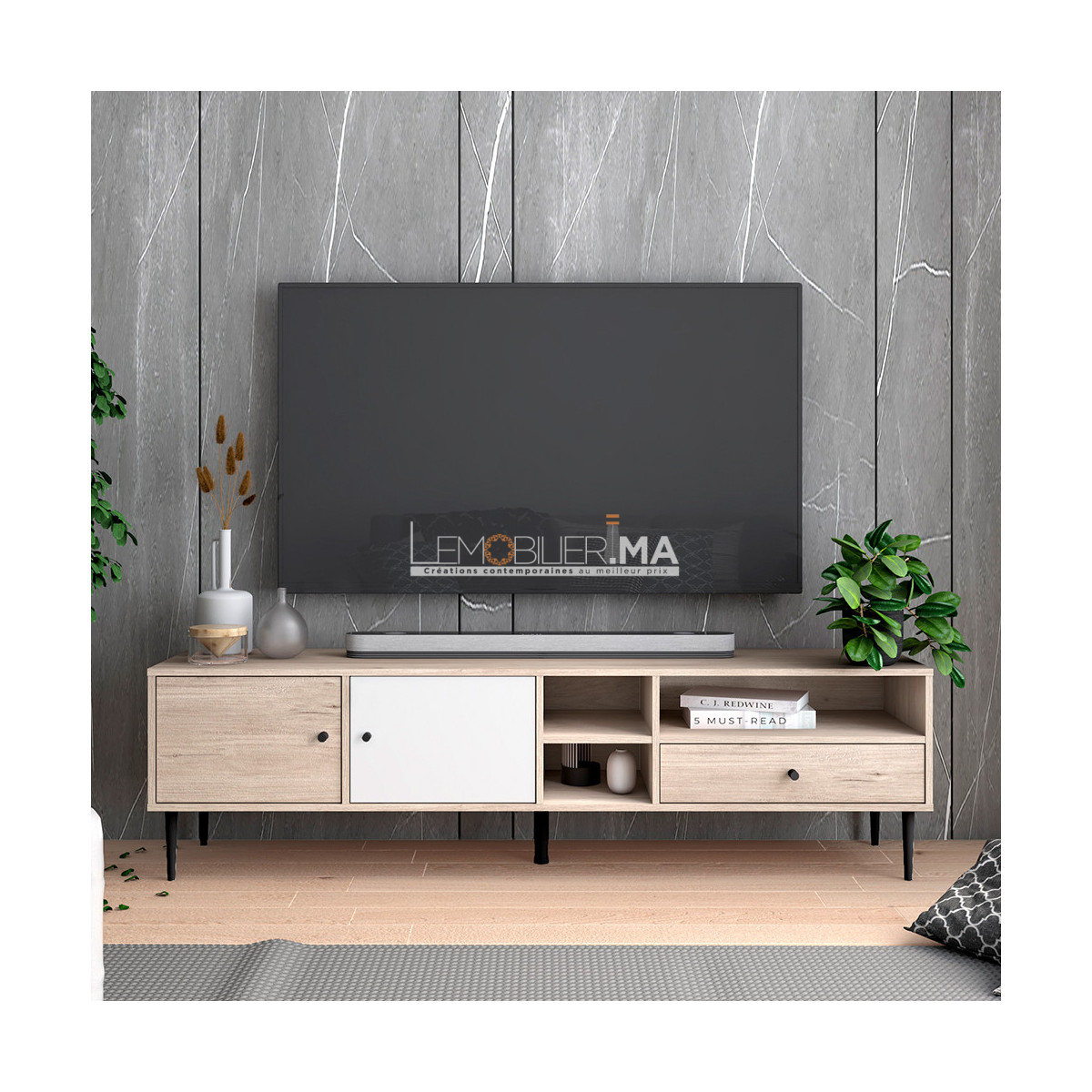 NEON est un meuble TV à l’esthétique contemporaine, qui allie flexibilité, sobriété et fonctionnalité. Réalisé en panneaux composites à finition bois de chêne clair, il s’intègre naturellement dans tous les styles d’intérieur, du plus scandinave au plus moderne.