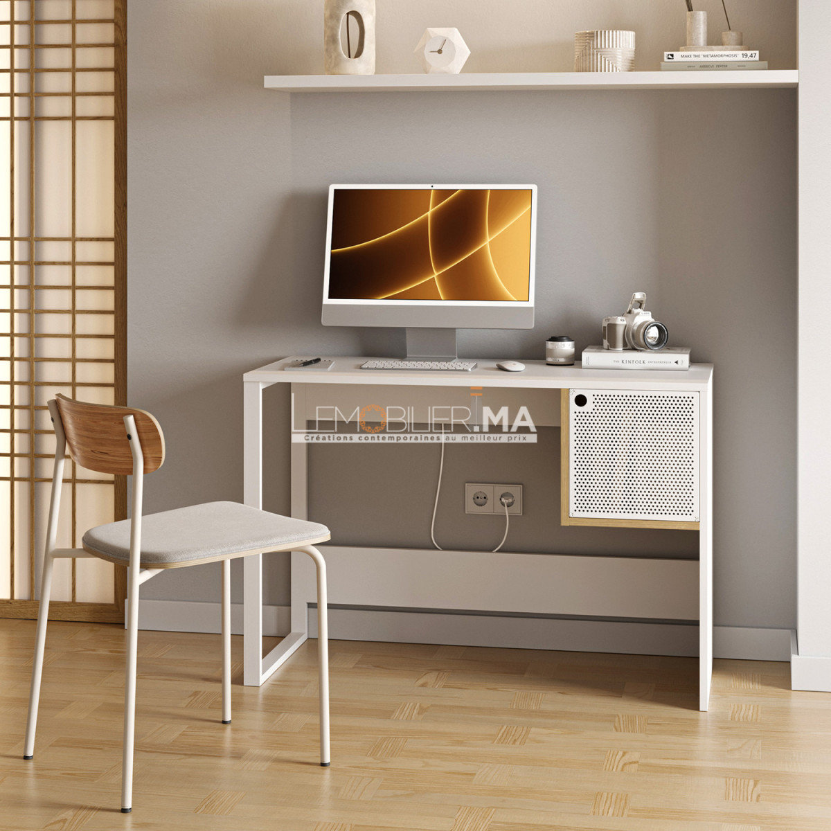 Son format réduit (110 x 50 cm) en fait une pièce idéale pour aménager un coin travail dans une chambre, un salon ou même une entrée. Son caisson suspendu perforé, à la fois discret et graphique, vous permet de ranger bloc-notes, câbles ou accessoires du quotidien tout en gardant votre plan de travail dégagé.