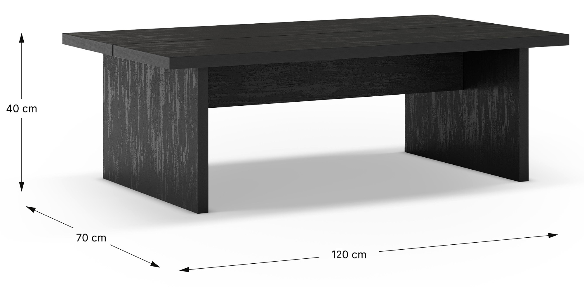 Avec sa silhouette monolithique, la table basse ENIGMA affirme une esthétique minimaliste mais puissante. Réalisée en panneaux MDF et HDF composites à la finition chêne noir cérusé, elle se distingue par ses reflets mats et ses veinures texturées qui rappellent l’aspect minéral et brut de l’ardoise naturelle. Le plateau est traversé d’un discret joint creux central, un détail raffiné qui renforce la pureté de ses lignes.