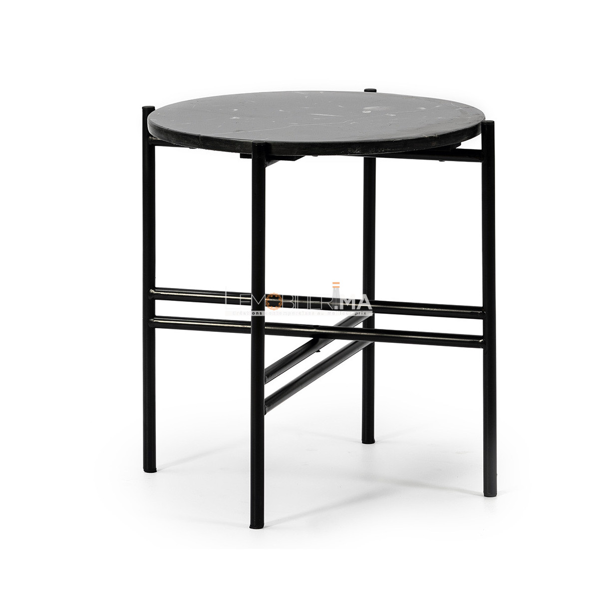 Minimaliste, graphique et audacieuse, la table d’appoint SWAY revendique une élégance brute. Elle se compose d’un piètement en acier tubulaire laqué noir à l'epoxy, à la silhouette volontairement structurée, accueillant un plateau circulaire en véritable marbre noir Marquina, naturellement veiné de blanc.