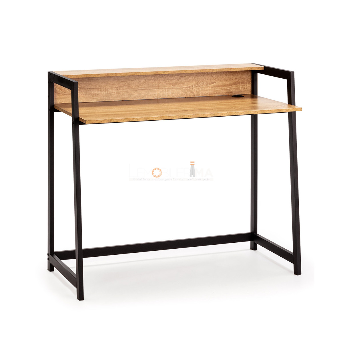Créez un coin bureau stylé et fonctionnel même dans un espace restreint grâce au bureau LEMY. Avec son design épuré et contemporain, il s’intègre aussi bien dans une chambre, un séjour ou un studio. Sa structure en acier laqué noir epoxy mat lui assure stabilité et robustesse, tandis que son plateau en panneaux composites finition chêne naturel offre une surface chaleureuse et facile à vivre.