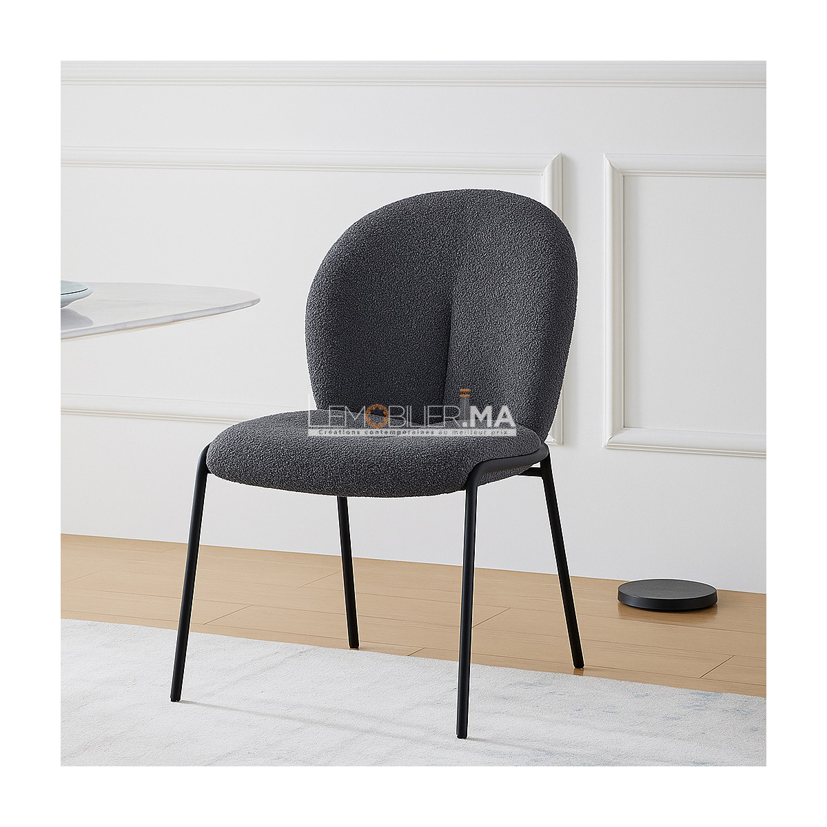 Avec sa silhouette arrondie et son assise généreusement rembourrée, la chaise VARY insuffle une douceur contemporaine à votre salle à manger ou à votre coin bureau. Sa structure tubulaire en acier laqué epoxy noir mat dessine un contraste moderne et minimaliste avec le revêtement en toile bouclée grise, une matière aussi tendance que confortable. On aime particulièrement la découpe subtile du dossier, pensée pour épouser le dos et offrir un excellent maintien.