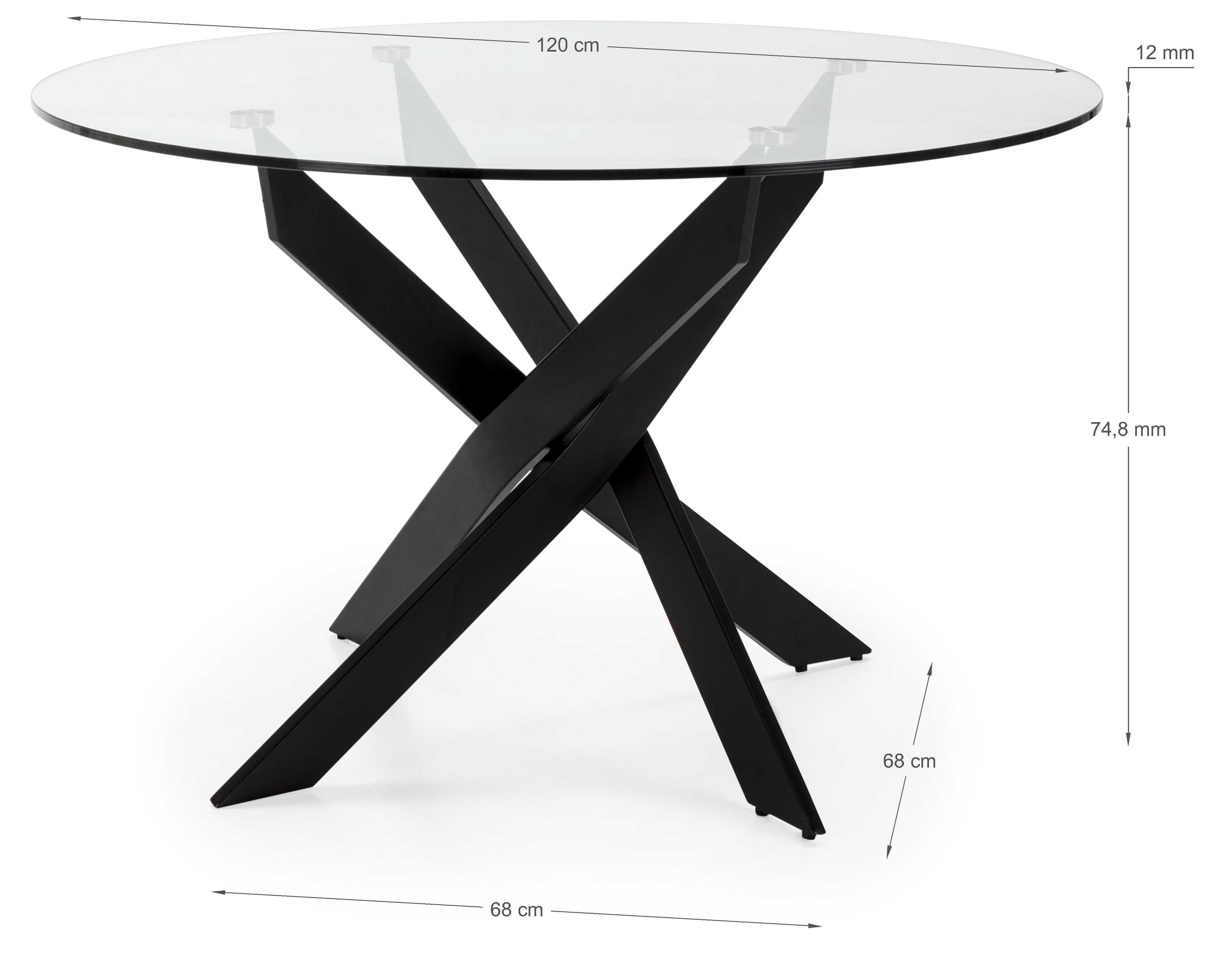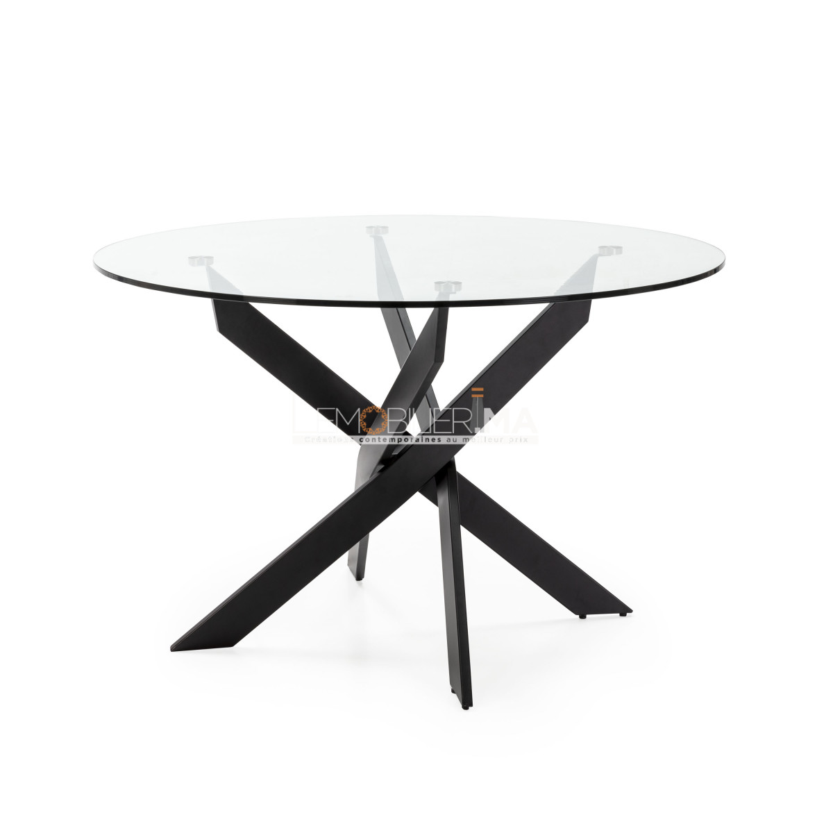La table à manger FLAVI séduit par son équilibre parfait entre légèreté visuelle et caractère architectural. Son plateau rond en verre trempé laisse circuler la lumière et allège instantanément l’espace, tout en mettant en valeur son piètement central sculptural en laque époxy noire. Les lignes croisées du piétement créent un jeu graphique élégant, presque aérien, qui transforme la table en véritable pièce de design, aussi belle au centre d’une salle à manger que dans une cuisine ouverte ou d'une salle de réunion.