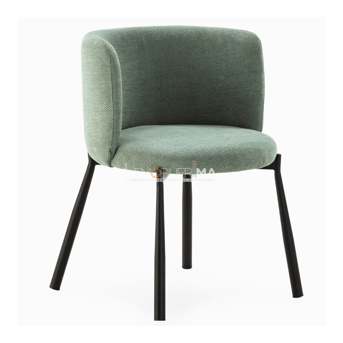 La chaise HIZY séduit immédiatement par son design enveloppant et ses lignes tout en douceur, pensées pour conjuguer confort et élégance au quotidien. Son dossier incurvé enveloppant et son assise généreusement rembourrée offrent une sensation d’accueil très agréable, idéale pour les repas qui s’éternisent ou pour un usage prolongé autour d’une table à manger, dans un bureau ou même en chaise d’appoint. Le piètement évasé en acier laqué epoxy noir apporte un contraste subtil avec le textile et confère à l’ensemble une silhouette légère, stable et résolument contemporaine.
