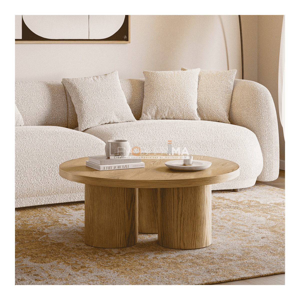 Reposant sur un piétement sculptural composé de volumes cylindriques en chêne, la table basse MALABO affirme une présence forte tout en conservant un équilibre parfait entre robustesse et légèreté. Cette architecture pleine et rassurante lui confère une grande stabilité, tout en faisant de la table une pièce centrale à part entière, aussi fonctionnelle que décorative. Son format rond facilite la circulation autour du canapé et s’intègre naturellement dans des intérieurs contemporains, scandinaves ou épurés.