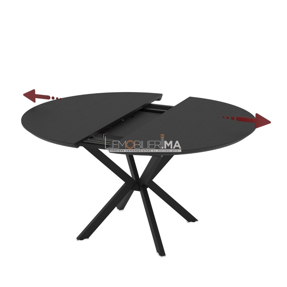 Le piétement central en acier laqué époxy noir, au dessin sculptural et dynamique, assure une excellente stabilité tout en libérant l’espace pour les jambes. Il devient un véritable élément architectural, renforçant le caractère contemporain et affirmé de la table WARA.