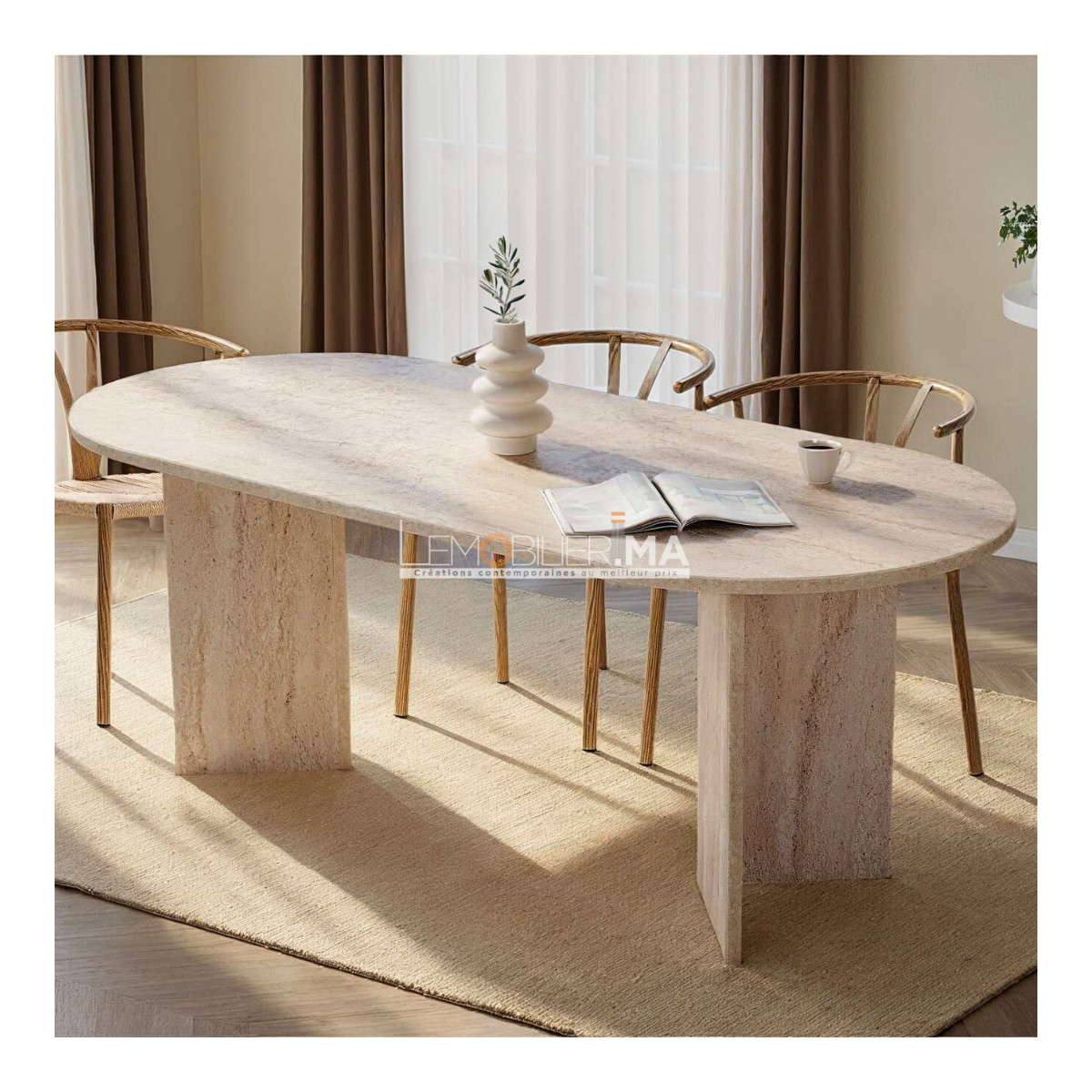 La table à manger NYRO a été pensée comme une pièce centrale, conviviale et élégante, autour de laquelle on aime se retrouver. Son plateau aux formes douces, subtilement organiques, repose sur deux piétements pleins qui lui donnent une vraie présence, tout en conservant une silhouette fluide et équilibrée. Elle trouve naturellement sa place dans une salle à manger contemporaine, un séjour chaleureux ou un espace ouvert à l’esprit minimaliste.